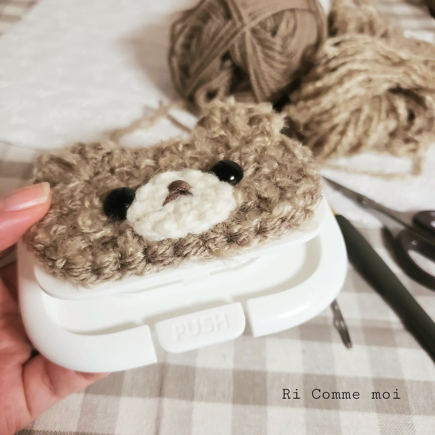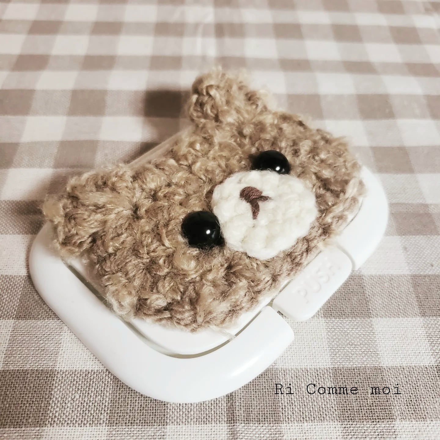 ふわふわもこもこのくまちゃんがフタに乗ってます