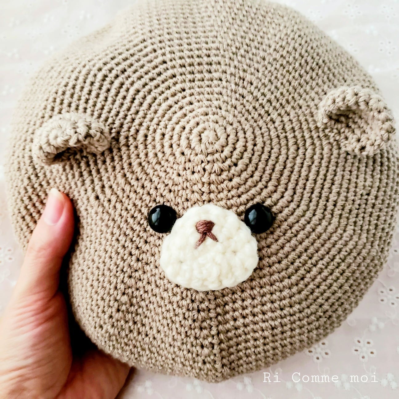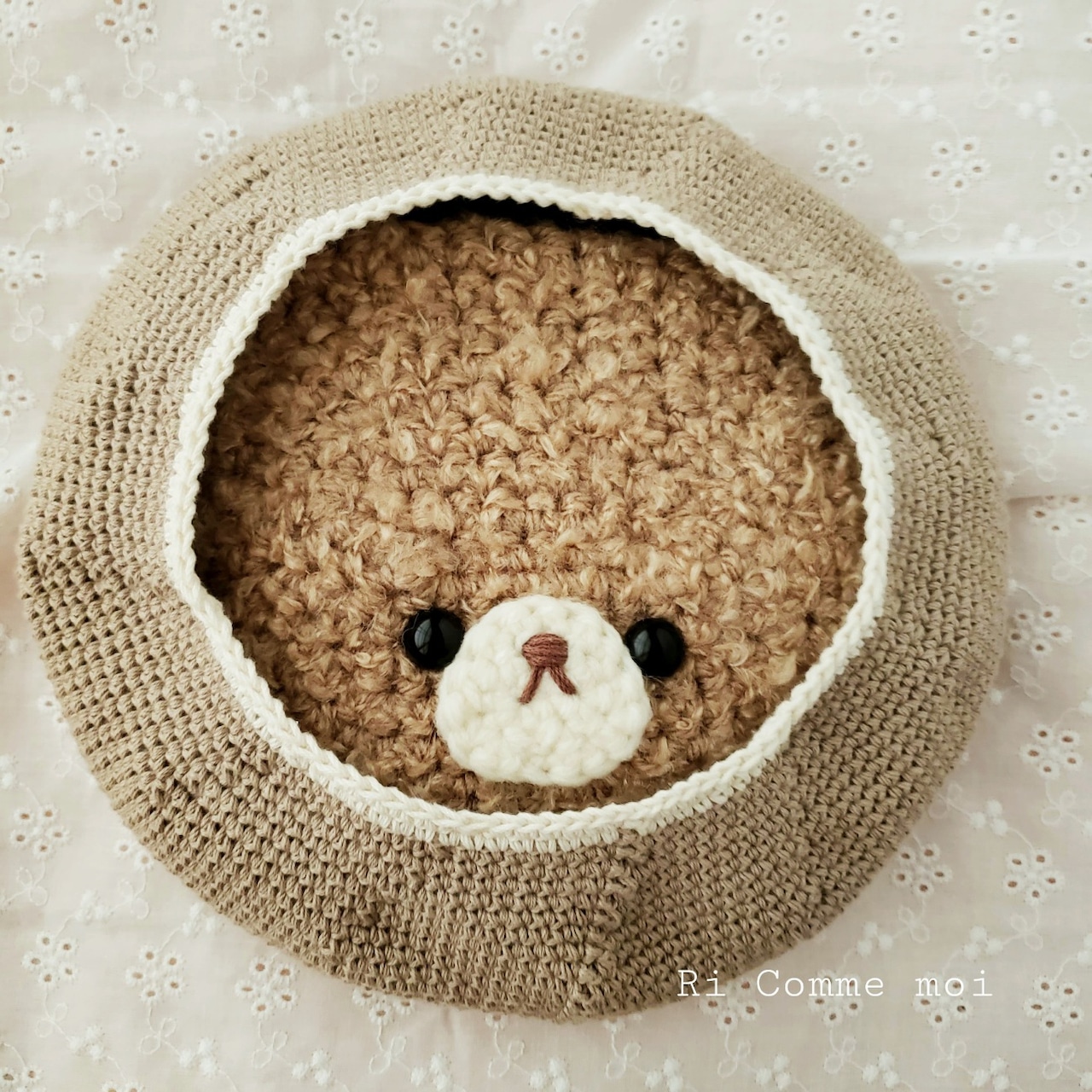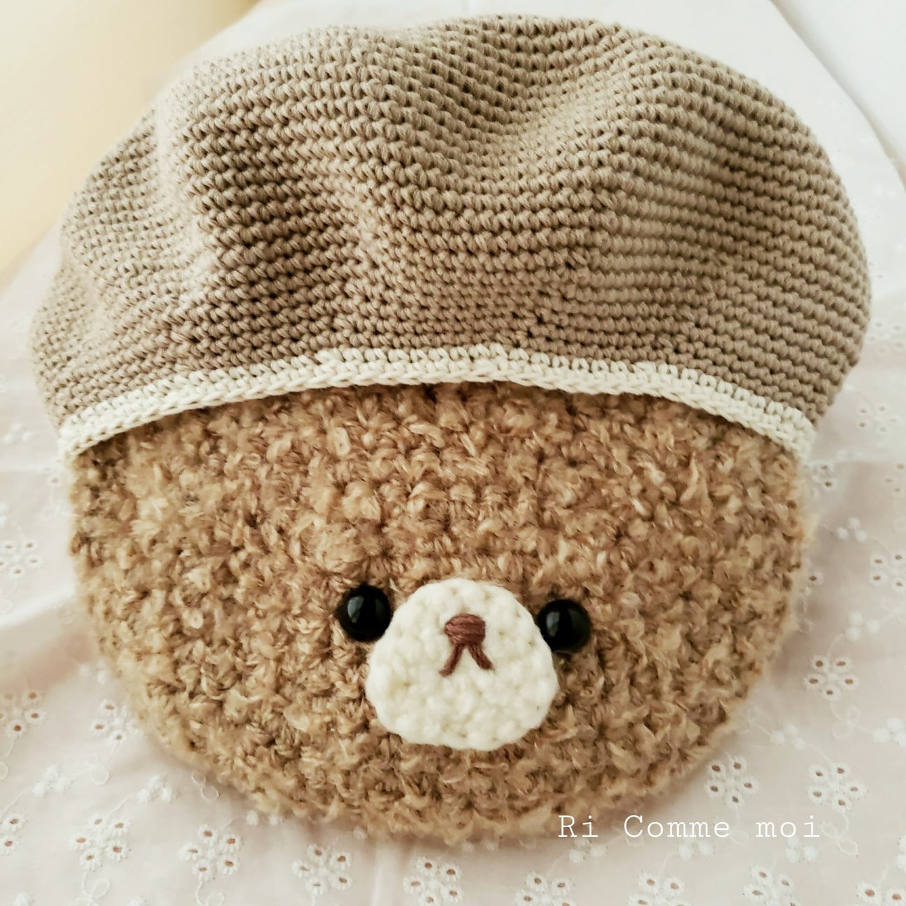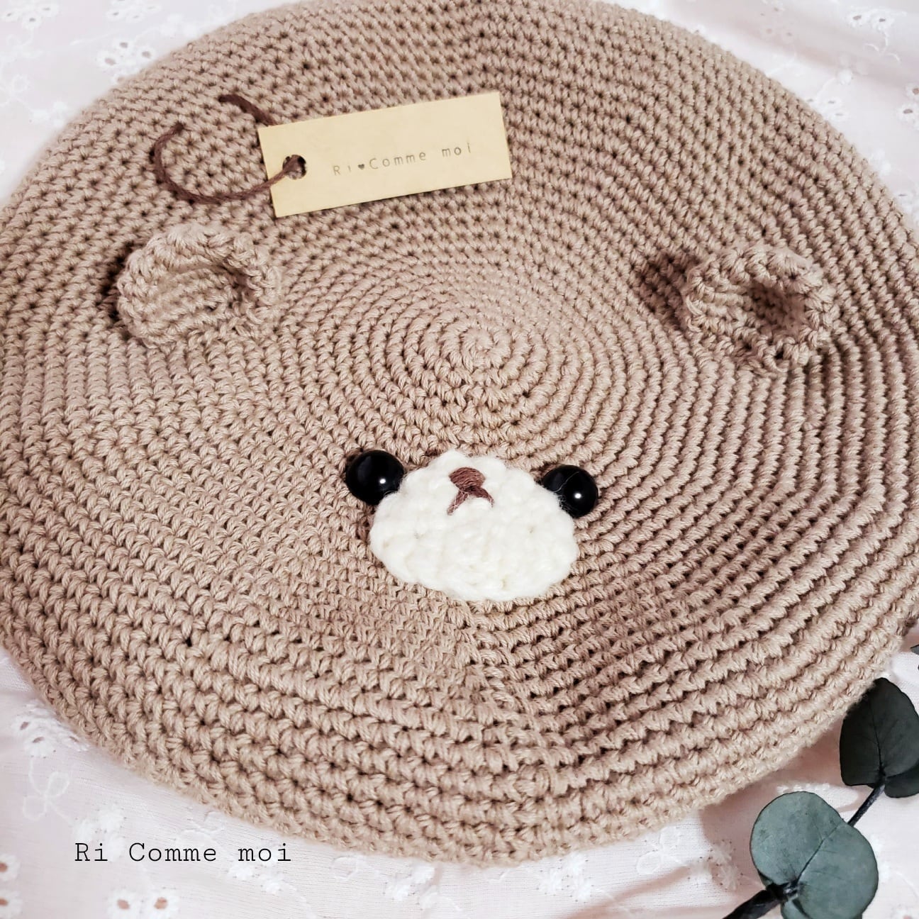 姪っ子(2歳)のために考えて生まれたくまちゃんベレー帽ฅ(๑・㉨・๑)ฅ